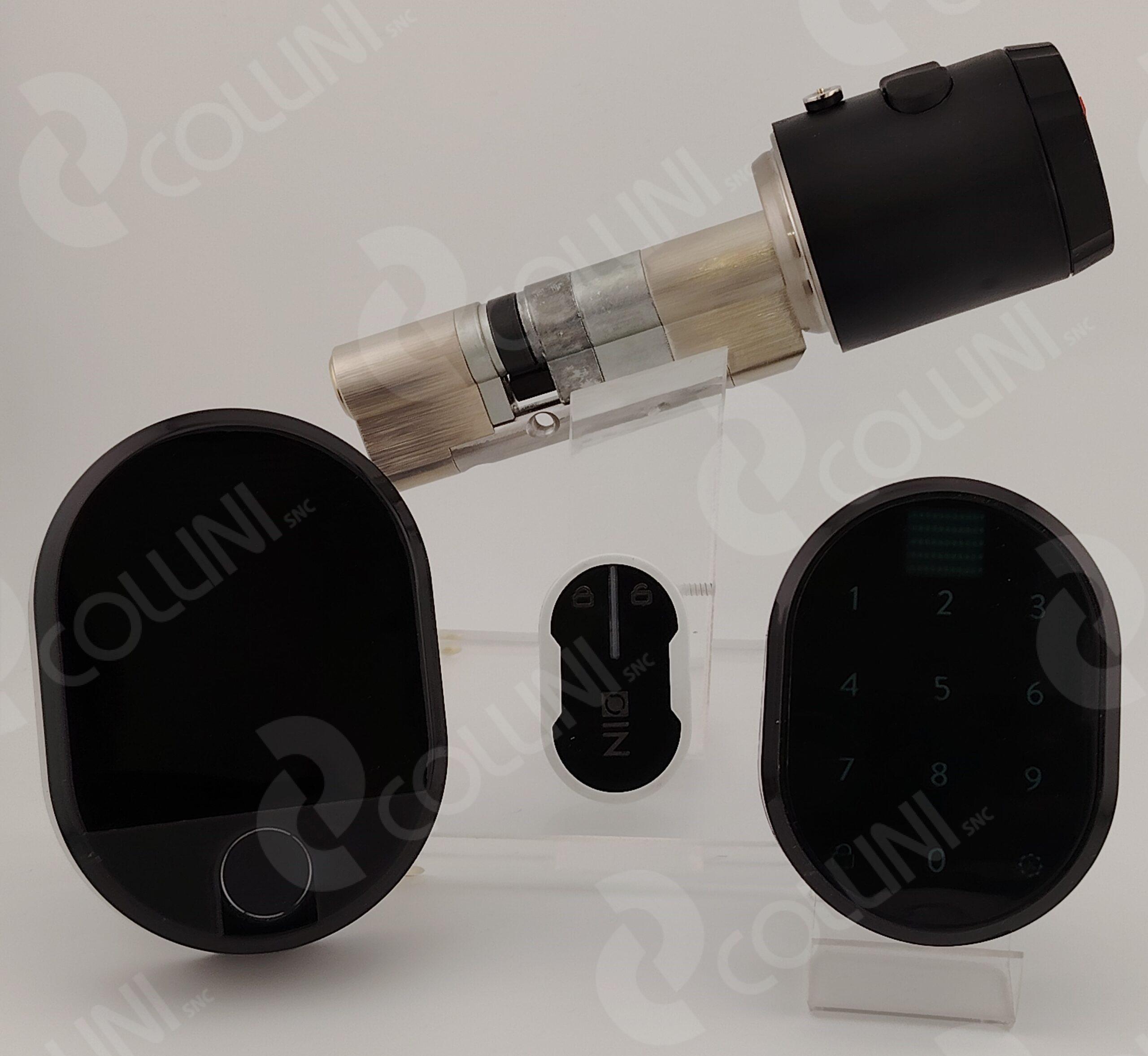 Possibilità di aprire la porta senza l’uso di chiavi, utilizzando il proprio smartphone oppure trmite l’ampia gamma di accessori da combinare con il sistema nio zen come il lettore biometrico di impronte wireless con tastierino OTP, Radiocomando user e tastierino OTP.