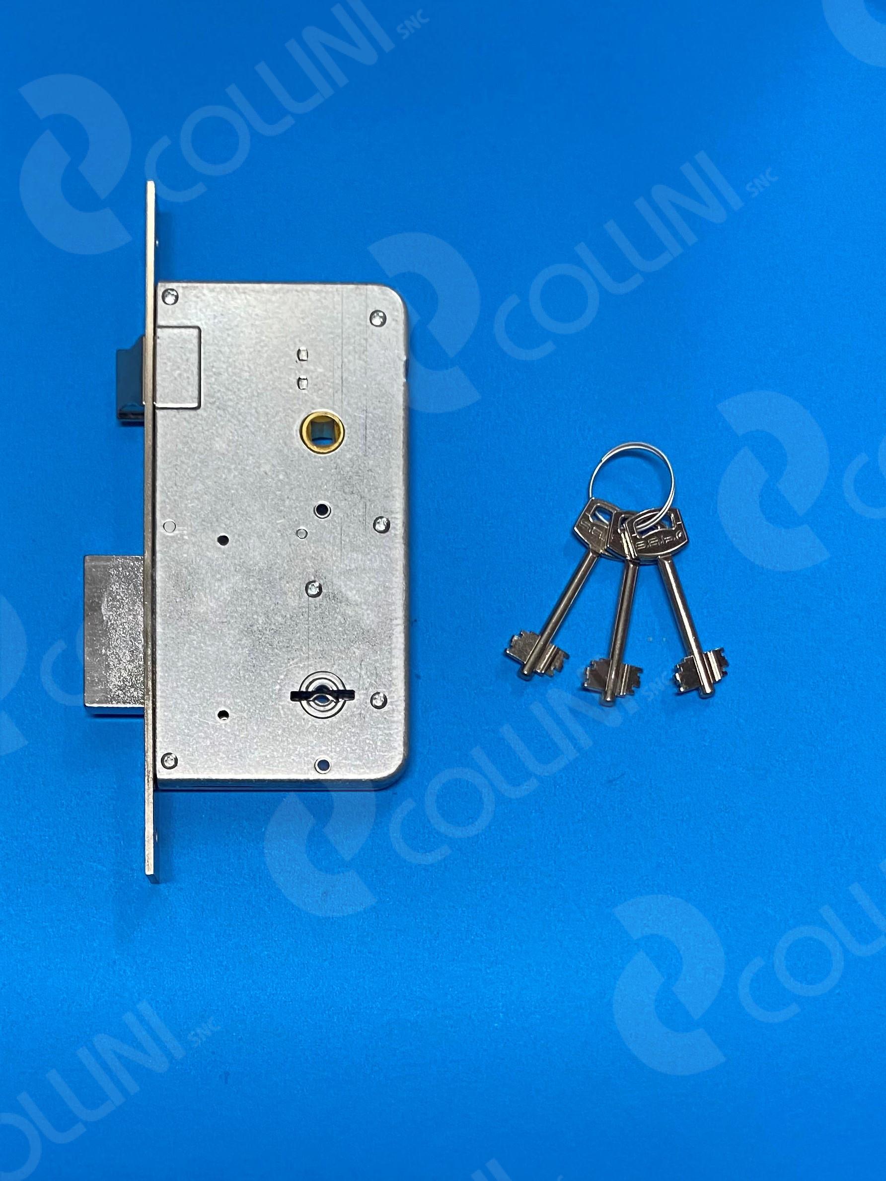 SERRATURA DA INFILATE TIPO PATENT CON CHIAVE A DOPPIA MAPPA CON ENTRATA 60 mm SCROCCO + 2 MANDATE CON SCROCCO CONTROLLATO SIA DA QUADRO MANIGLIA SIA DALLA CHIAVE CON CHIAVE CORTA
